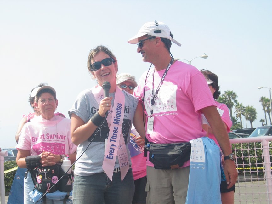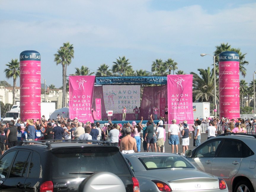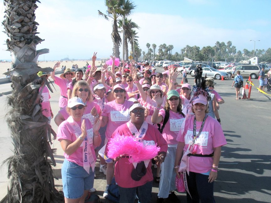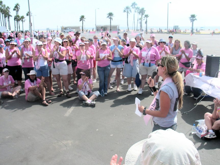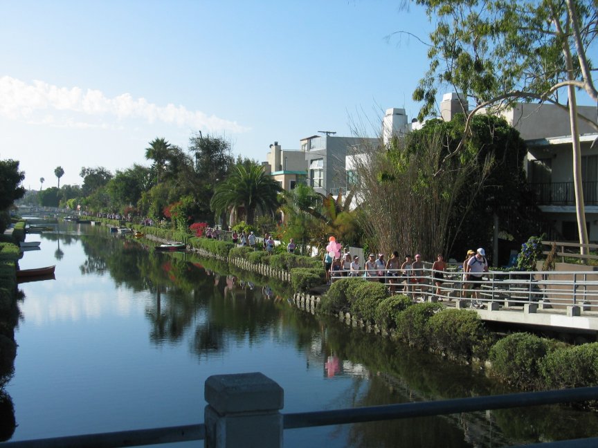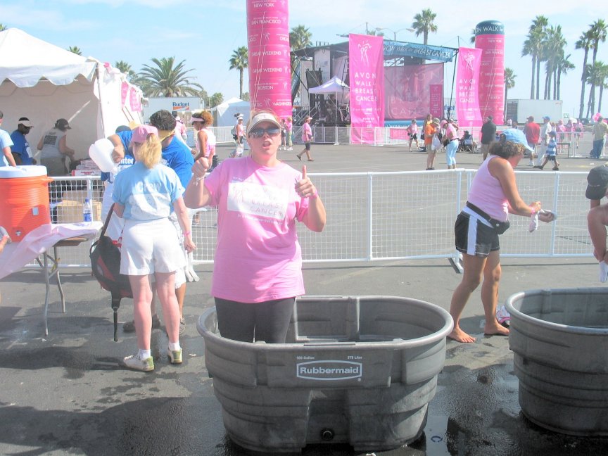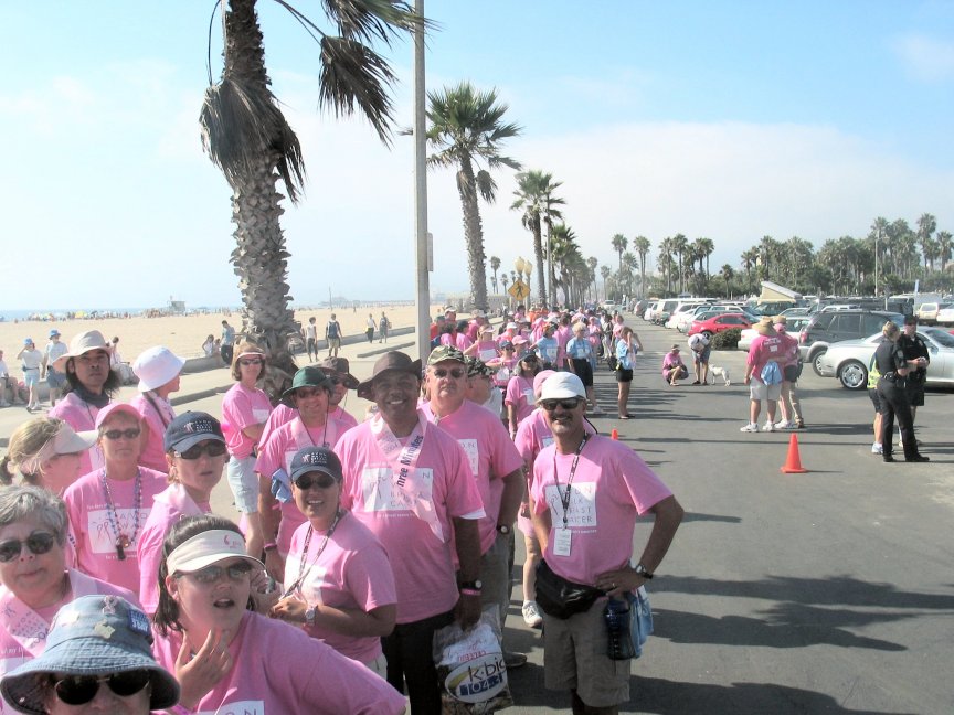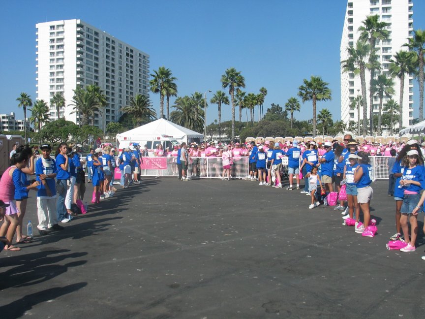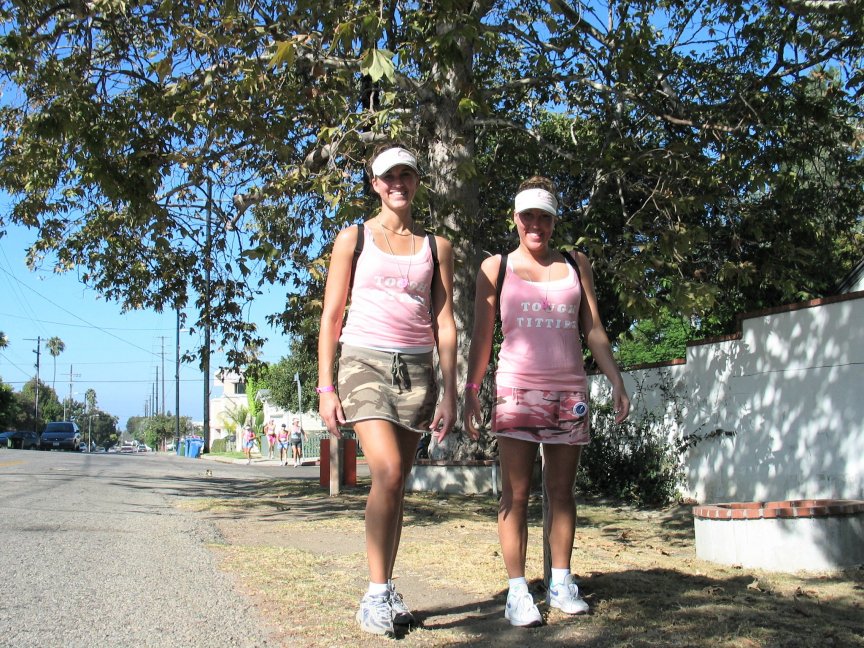 | Getting ready for the Tents | Walkers along Venice Canals | Tough Titties | You can see the tallest building in LA from the route |